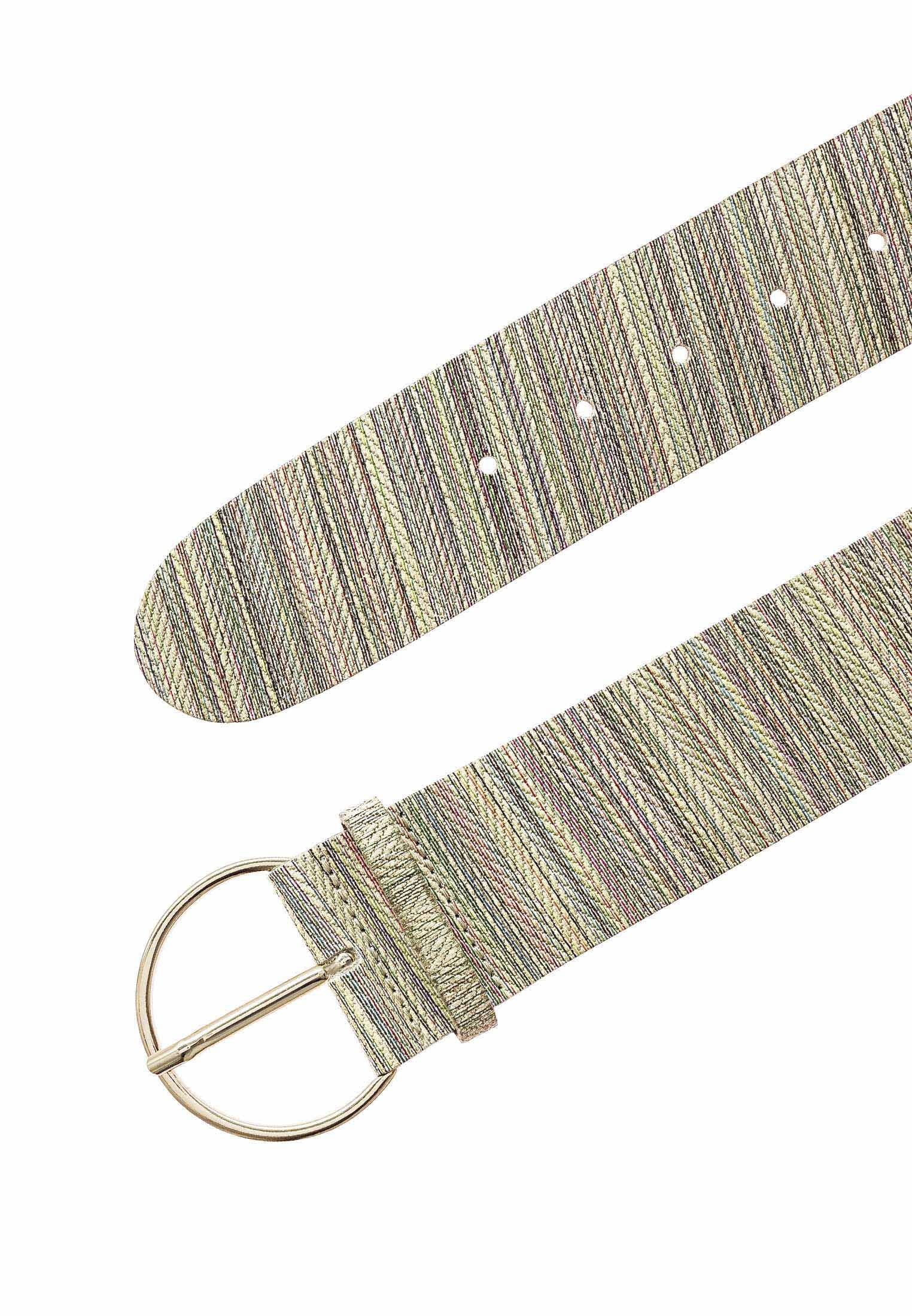Der Gürtel ist 50 mm breit und mit einer schlichten Dornschließe in glänzendem Gold verziert. Dieser Gürtel ist die ideale Ergänzung zu allen Freizeit-Outfits und garantiert einen aufsehenerregenden und femininen Look.