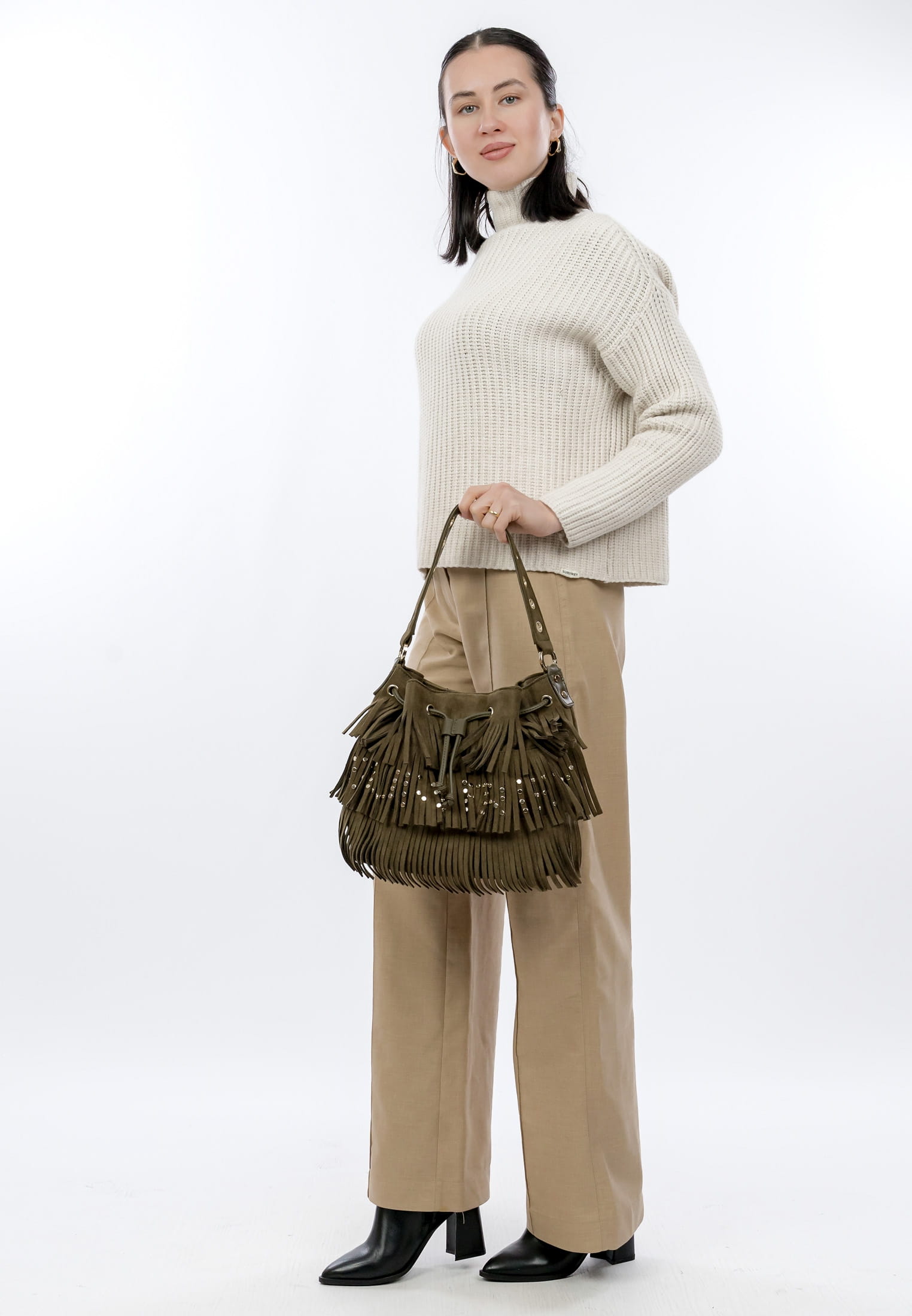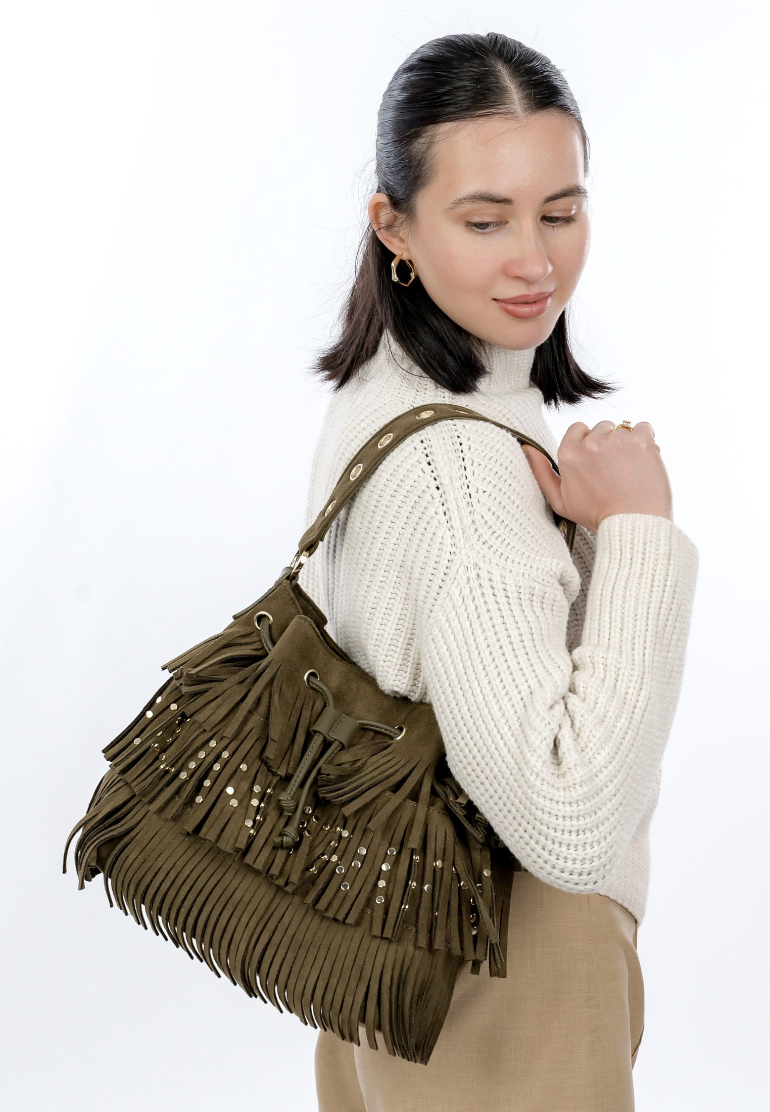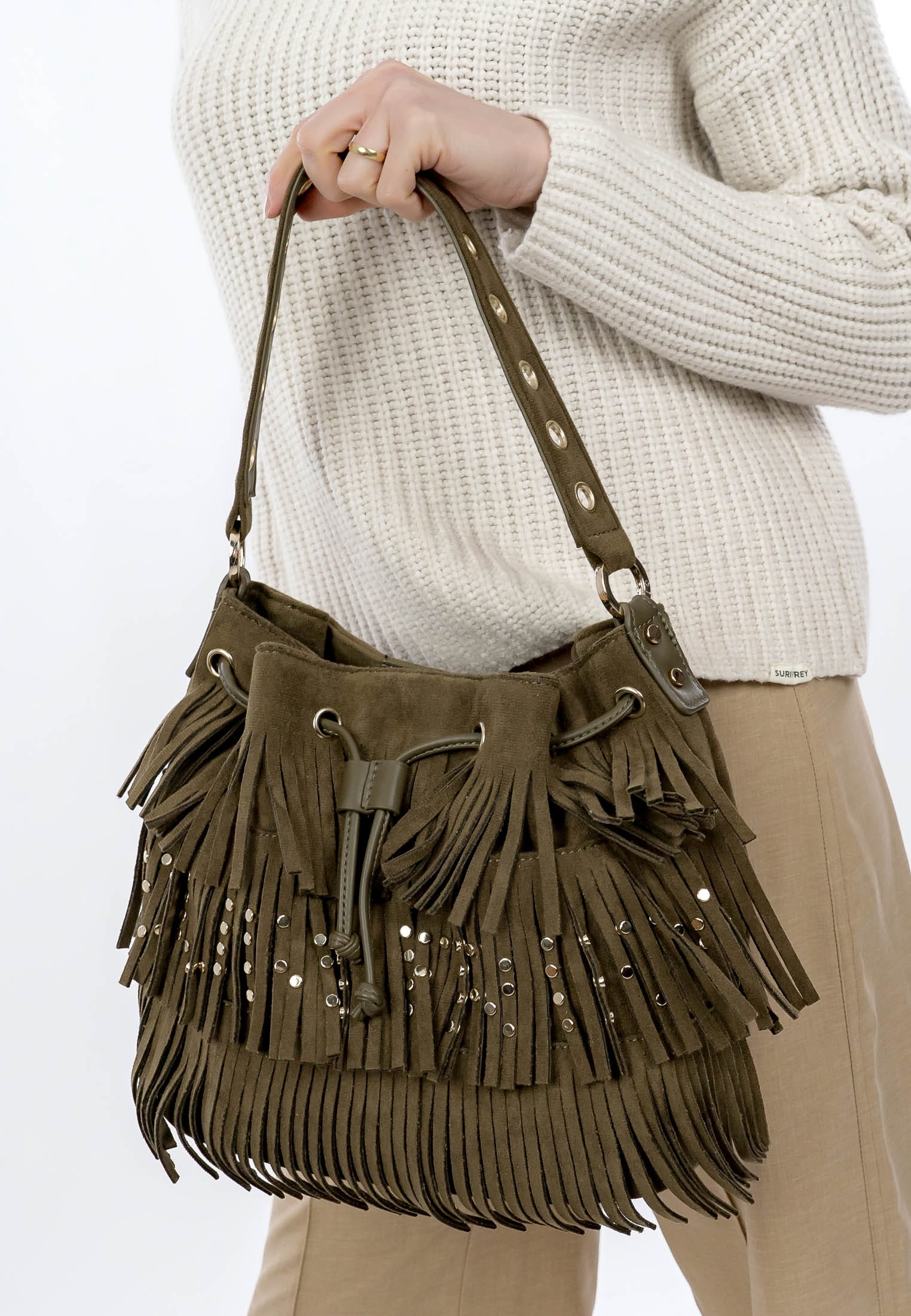 Eine Handtasche ist wie eine gute Freundin, Du kannst sie überall mit hinnehmen und sie lässt Dich nie im Stich. Unser Beutel SFY Becky kommt aus Feinsynthetik mit Fransen und sieht einfach richtig gut aus. Mit SFY Becky lässt sich ganz einfach ein lässiges Outfit zaubern, das auch bei Freunden und Kollegen gut ankommt. Ein Beutel, auf den immer Verlass ist. Gefertigt ist das Modell, das sich mit Kordelzugverschluss verschließen lässt, aus Feinsynthetik. Durch das Material ist es angenehm im Griff. Der samt und der Material-Mix sind fein gearbeitet und verleihen dem Beutel einen edlen Look.