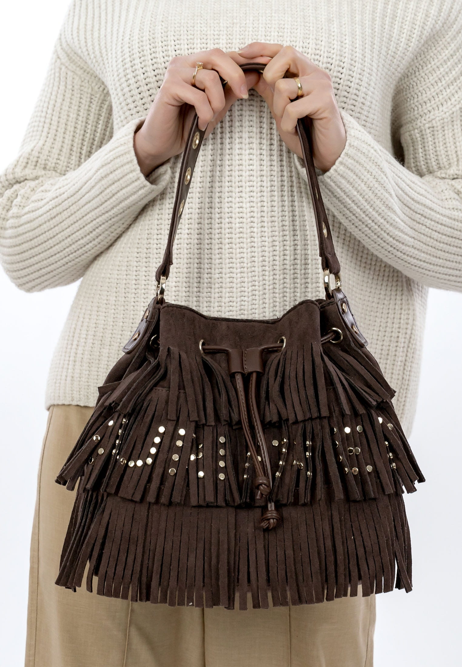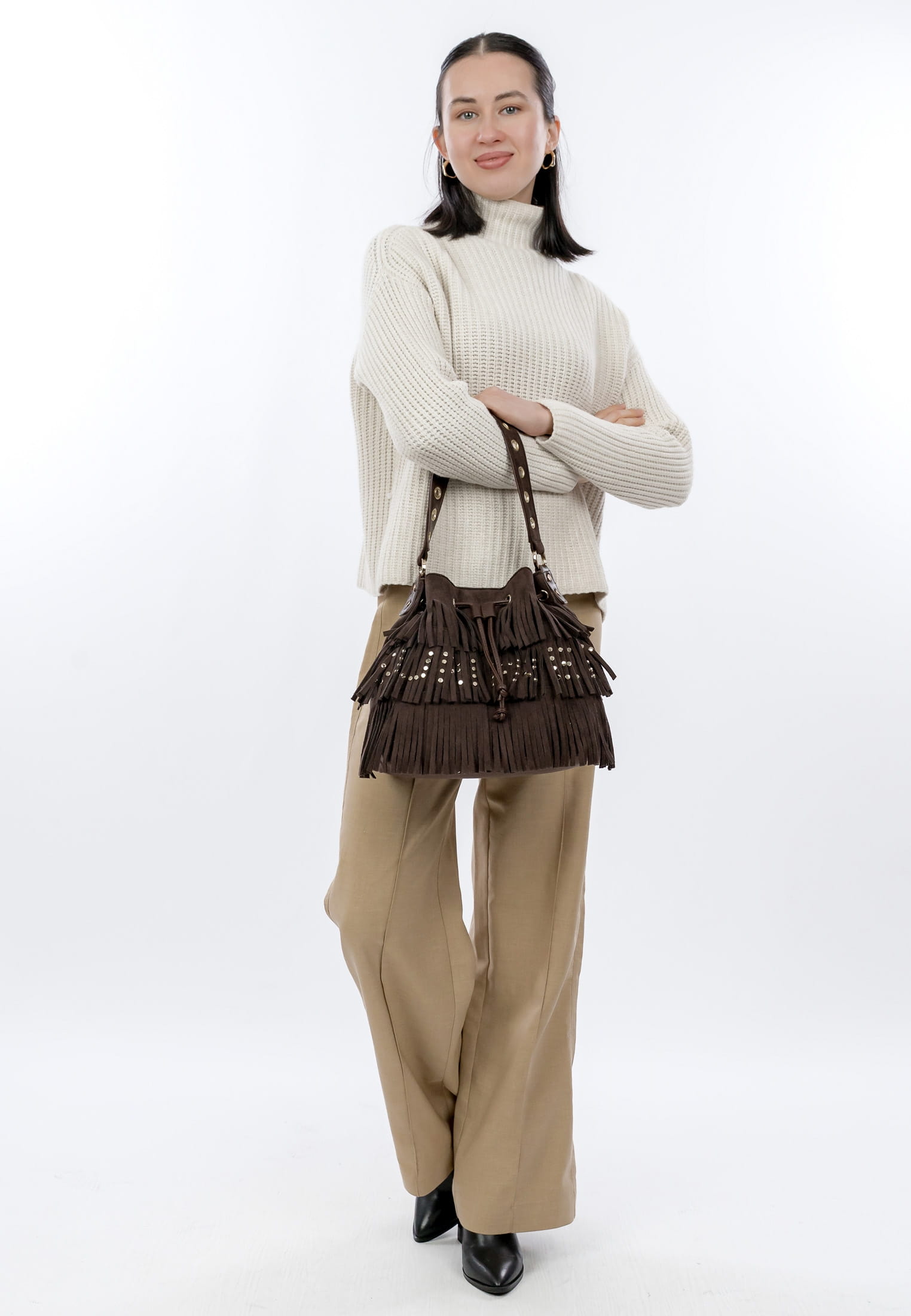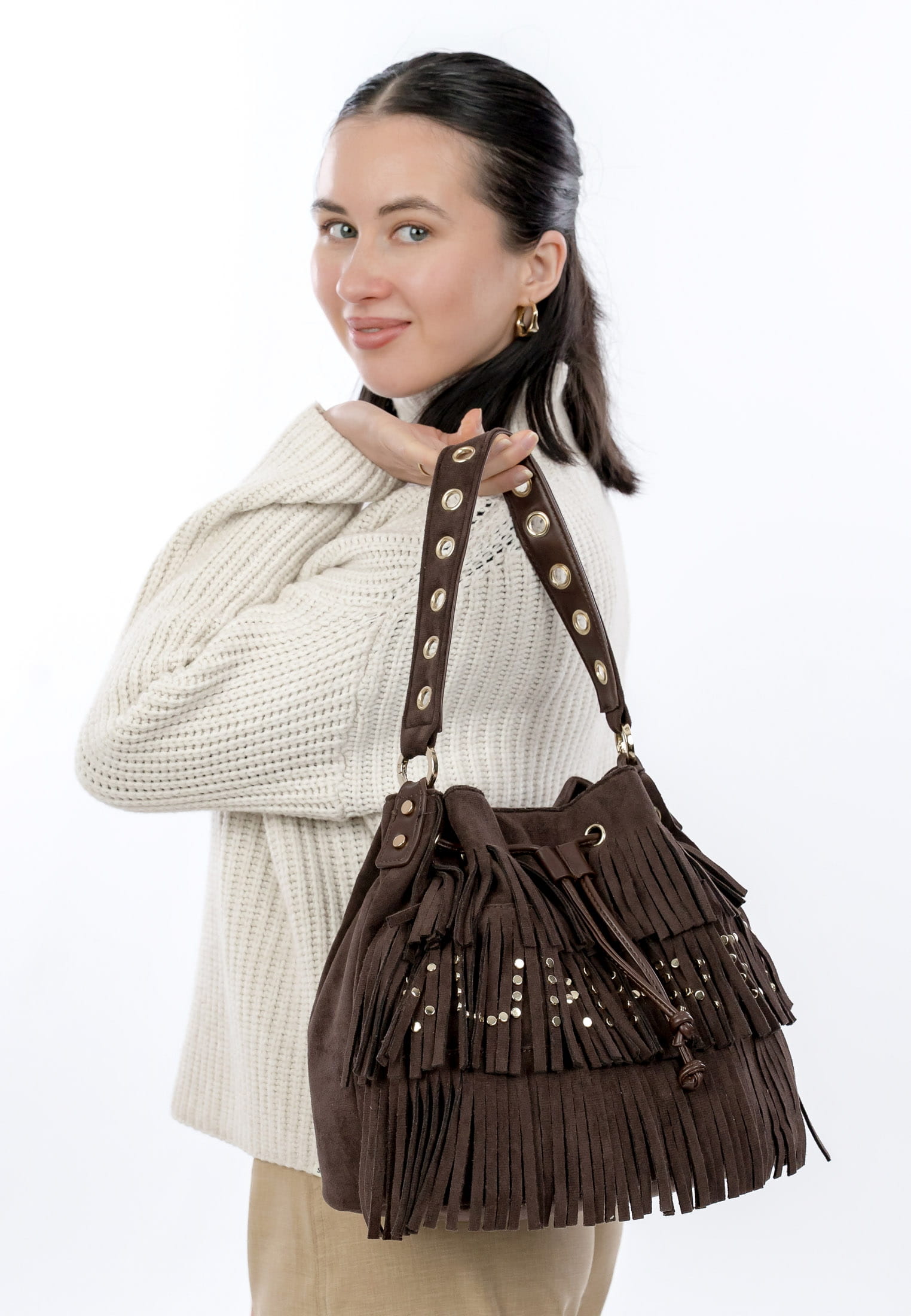 Eine Handtasche ist wie eine gute Freundin, Du kannst sie überall mit hinnehmen und sie lässt Dich nie im Stich. Unser Beutel SFY Becky kommt aus Feinsynthetik mit Fransen und sieht einfach richtig gut aus. Mit SFY Becky lässt sich ganz einfach ein lässiges Outfit zaubern, das auch bei Freunden und Kollegen gut ankommt. Ein Beutel, auf den immer Verlass ist. Gefertigt ist das Modell, das sich mit Kordelzugverschluss verschließen lässt, aus Feinsynthetik. Durch das Material ist es angenehm im Griff. Der samt und der Material-Mix sind fein gearbeitet und verleihen dem Beutel einen edlen Look.