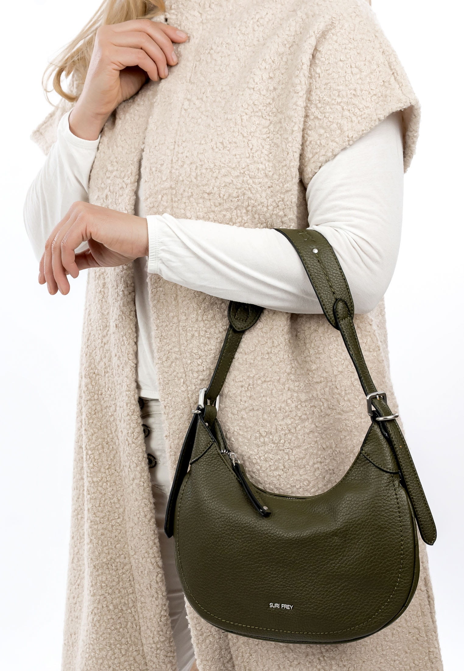 Wir wissen, was Dir wichtig ist - Freundschaften, Lebensfreude und Deine persönliche Freiheit. Und genau das spiegeln wir mit unserer Produktlinie wider. Ausgestattet ist der Beutel mit einem Hauptfach. Mit Reißverschluss-Fächern auf der Rückseite hast Du zusätzlichen Stauraum und unkomplizierten Zugriff auf alle unentbehrlichen Dinge. Durch die weiche Haptik schmiegt sich Dein neuer Beutel der Serie SFY Henny angenehm an. Für das süße Extra sorgt die Applikation mit Single Lettering, die zum verspielten Blickfang wird. Dieses neue Lieblingsstück wird dank abnehmbarem Tragegriff einfach über der Schulter getragen. Dank der verschiedenen Tragevarianten ist dieses Modell so wandelbar wie Dein Alltag und fügt sich perfekt in jede Situation ein. Unser Beutel ist ein unverzichtbares Accessoire für einen großartigen Abend oder die Vernissage in der neuen Galerie. Damit hast Du Platz für Dein Handy, eine kleine Geldbörse und Deinen Lieblingslippenstift.