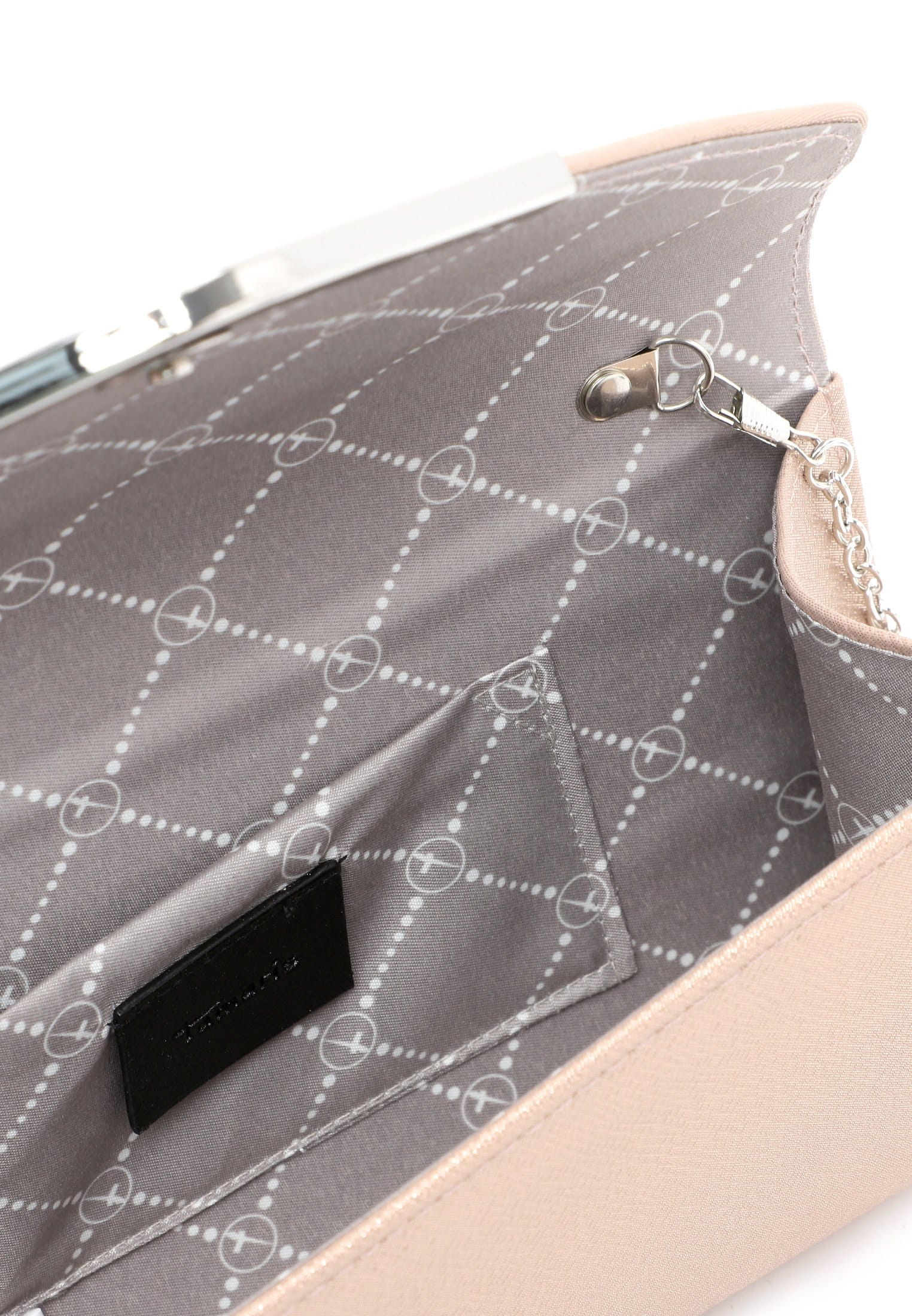 Bei Tamaris finden Frauen, was sie wirklich wollen. Einfach und praktisch: Übersichtliche Hauptfächer hat die Clutch. Durch das eher feste Material ist die Clutch etwas robuster und stabiler. Die Vorteile: etwas mehr Überblick und besserer Stand, wenn Sie Ihren neuen Begleiter nach etwas Wichtigem durchsuchen müssen. Eine Logo-Prägung schmückt optisch und hebt das besondere Design dieses neuen Favoriten hervor. Über der Schulter ist dieses Modell mit dem praktischen Umhängeriemen zu tragen. Dank der verschiedenen Tragevarianten ist dieses Modell so wandelbar wie Ihr Alltag und fügt sich perfekt in jede Situation ein. Unsere Clutch ist das Must-Have für einen aufregenden Abend oder die Ausstellung in der angesagten Galerie. Damit haben Sie Platz für Ihr Handy, eine kleine Geldbörse und Ihren Lieblingslippenstift.
