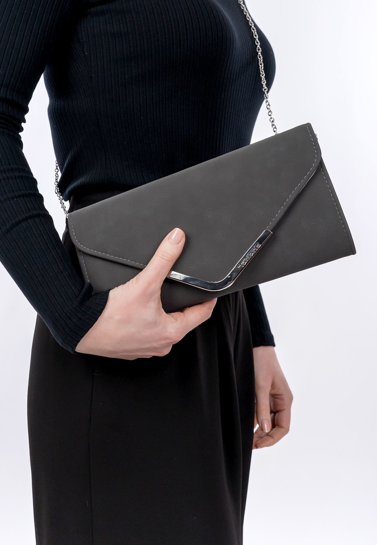Bei Tamaris finden Frauen, was sie wirklich wollen. Einfach und praktisch: Übersichtliche Hauptfächer hat die Clutch. Durch das eher feste Material ist die Clutch etwas robuster und stabiler. Die Vorteile: etwas mehr Überblick und besserer Stand, wenn Sie Ihren neuen Begleiter nach etwas Wichtigem durchsuchen müssen. Eine Logo-Prägung schmückt optisch und hebt das besondere Design dieses neuen Favoriten hervor. Über der Schulter ist dieses Modell mit dem praktischen Umhängeriemen zu tragen. Dank der verschiedenen Tragevarianten ist dieses Modell so wandelbar wie Ihr Alltag und fügt sich perfekt in jede Situation ein. Unsere Clutch ist das Must-Have für einen aufregenden Abend oder die Ausstellung in der angesagten Galerie. Damit haben Sie Platz für Ihr Handy, eine kleine Geldbörse und Ihren Lieblingslippenstift.