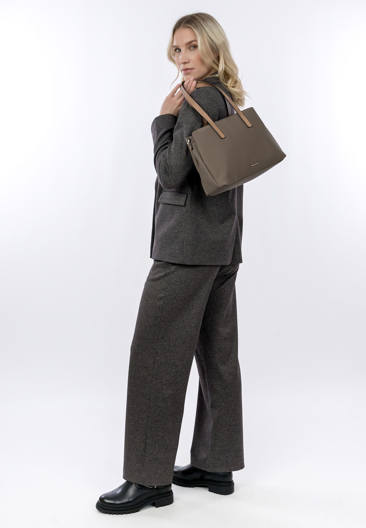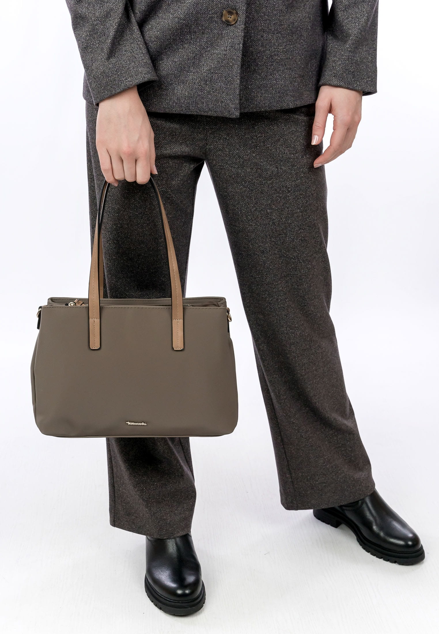 Für alle Styles und jeden Anlass wird ein Outfit erst durch den passenden Begleiter perfekt - mit Tamaris kann sich jede Frau sehen lassen. Ausgestattet ist der Shopper mit drei Hauptfächern. Reißverschluss-Fächer auf der Rückseite bieten zusätzlichen Stauraum und erlauben den leichten Zugang zu Dingen, die man immer griffbereit haben möchte. Weil wir so ein weiches Material verwendet haben, ist TAS Gertraud besonders anschmiegsam. Single Lettering schmückt optisch und hebt das besondere Design dieses neuen Favoriten hervor. Über der Schulter ist dieses Modell mit den zwei Tragegriffen zu tragen. Dank der verschiedenen Tragevarianten ist dieses Modell so wandelbar wie Ihr Alltag und fügt sich perfekt in jede Situation ein. Die perfekte Größe für alles, was man unterwegs so braucht - hier passt sogar ein handliches Etui für das Makeup mit rein.