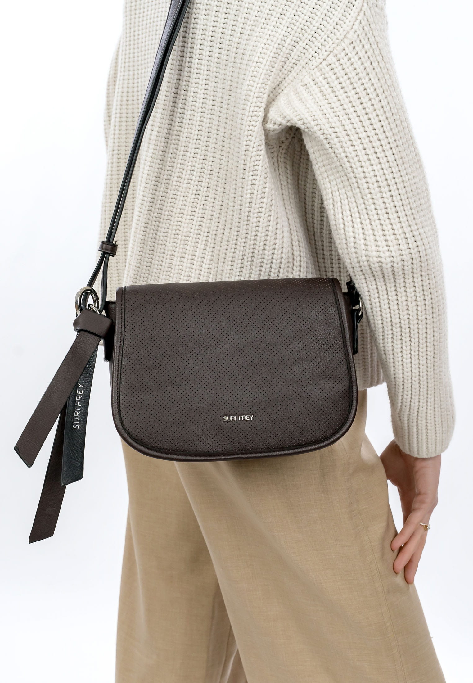 Wenn wir unterwegs sind, wollen wir einfach gut aussehen. Wir bei SURI FREY haben genau die Accessoires, die unsere Kundinnen so glücklich machen. Ausgestattet ist die Umhängetasche mit einem Hauptfach. Mit einem Rückfach mit Reißverschluss hast Du extra Stauraum und einfachen Zugriff auf alle unentbehrlichen Dinge. Durch die weiche Haptik schmiegt sich Deine neue Umhängetasche der Serie SFY Macy angenehm an. Einen zusätzlichen Akzent setzt Single Lettering. Mit wird der neue Lieblingsbegleiter ganz locker und entspannt als Schultertasche getragen. Dank der verschiedenen Tragevarianten ist dieses Modell so wandelbar wie Dein Alltag und fügt sich perfekt in jede Situation ein. Die ideale Größe für alles, auf das man unterwegs nicht verzichten kann - hier passt sogar ein handliches Etui für Makeup, Lippenstift und Co. mit rein.